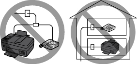 Ha a jelosztó nincs beépítve a modembe, ne ágaztassa el a telefonvonalat az osztó előtt (a fali csatlakozás felé). Ne csatlakoztasson több osztót párhuzamosan. Előfordulhat, hogy a nyomtató nem fog megfelelően működni.