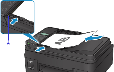 Juster dokumentføreren (A) på forsiden av skriveren slik at den passer til bredden på dokumentet.