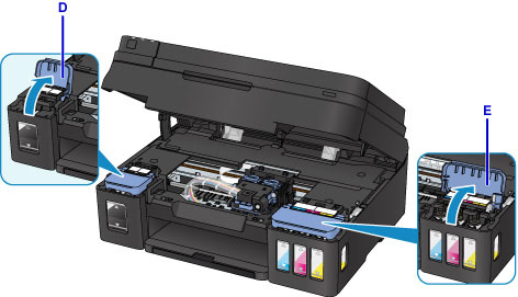 Hvis du utfører følgende erstatningsprosedyrer uten å åpne blekktankdeksel, er det ikke sikkert du kan skrive ut riktig. Ikke lukk blekktankdekselet før du har byttet ut skrivehode.