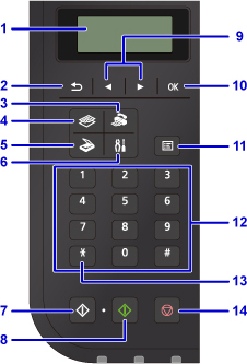 - Afişează ecranul Meniu Copiere (Copy menu), Meniu Scanare (Scan menu) sau Meniu Fax (FAX menu).