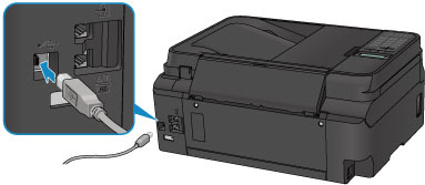 Anslut skrivaren till datorn med en USB-kabel enligt bilden nedan. USB-porten sitter på skrivarens baksida.