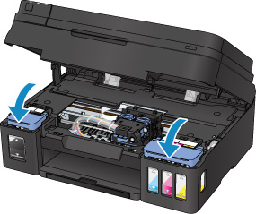 ปิดฝาครอบล็อกหัวพิมพ์ เพื่อล็อกหัวพิมพ์ให้อยู่ในตำแหน่ง