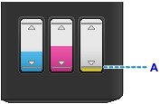 Якщо рівень чорнила, що залишилося, нижче нижньої обмежувальної лінії (A), заправте чорнильницю чорнилом відповідного кольору.