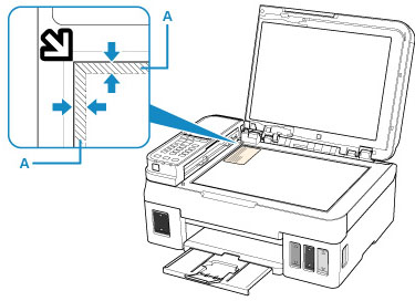 Τοποθετήστε την ταυτότητα με την μπροστινή όψη στραμμένη προς τη γυάλινη επιφάνεια σάρωσης, με απόσταση 2 χιλ. (0,12 ιντσών) ή περισσότερο μεταξύ των πλευρών [περιοχή με διαγώνιες λωρίδες (A)] της γυάλινης επιφάνειας σάρωσης και, στη συνέχεια, πατήστε το κουμπί OK.