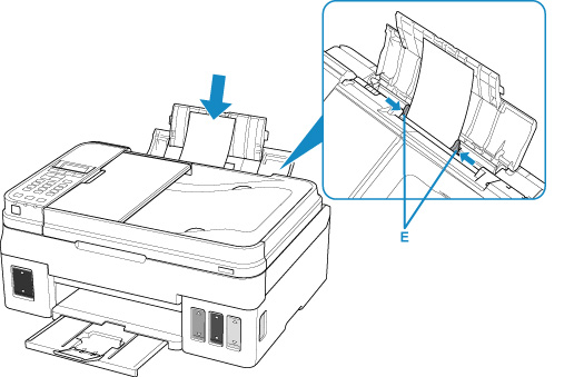 Ευθυγραμμίστε τους οδηγούς χαρτιού (E) με το πλάτος του φακέλου.