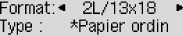 Une fois que vous avez chargé le papier dans le réceptacle arrière, l'écran d'enregistrement des informations sur le papier pour le réceptacle arrière s'affiche sur l'écran LCD.