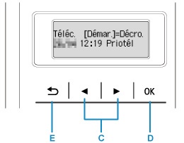 Dans l'écran de menu ou de paramètres, utilisez le bouton Gauche Droite (C) pour sélectionner un élément ou une option et appuyez sur le bouton OK (D) pour poursuivre la procédure.
