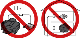 Ако сплитерът не е вграден в модема, не разделяйте телефонната линия преди сплитера (откъм стената). Също така не свързвайте сплитери паралелно. Принтерът е възможно да не може да работи правилно.