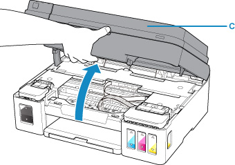 Nyissa fel a lapolvasó egységet/fedelet (C).