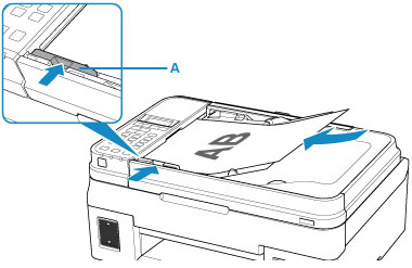 Regolare la guida dei documenti (A) per adattarla alla larghezza del documento.
