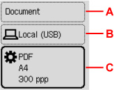 C: Affiche l'écran des paramètres de numérisation