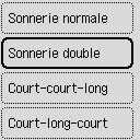 Choisissez Sonnerie normale, Sonnerie double, Court-court-long ou Court-long-court.