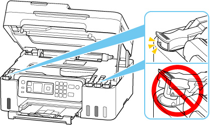 • Prepričajte se, da so pokrovčki vložka za črnilne vložke pravilno zaprti. Če so pokrovčki vložka odprti, pravilno zaprite pokrovčke vložka.