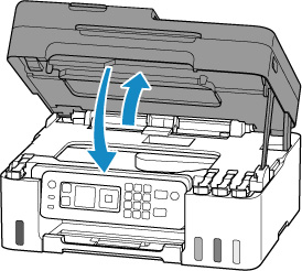Stäng skannerenhet/lucka genom att lyfta upp den en bit och sedan sänka ner den försiktigt.