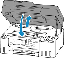 Aizveriet drukas galviņas bloķēšanas vāku, lai nofiksētu drukas galviņu vietā.