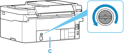 3. Fjern myntskruen fra vedlikeholdsdekselet (C).