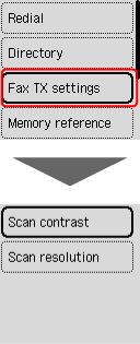 Faks bekletme ekranının Menü (Menu) bölümünden Faks TX ayarları (Fax TX settings) öğesini seçerseniz faks iletimi sırasında taranan resmin çözünürlüğü ve tarama karşıtlığı ayarlanabilir.