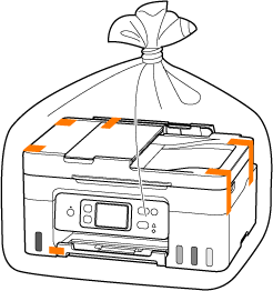Cuando se transporte la impresora, empaquete la impresora en una bolsa de plástico para que la tinta no se derrame.