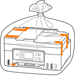 Cuando se transporte la impresora, empaquete la impresora en una bolsa de plástico para que la tinta no se derrame.