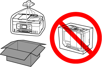 請勿傾斜印表機;否則墨水可能會漏出。 貨運代理公司運輸印表機時,請在包裝箱上標明「此面向上」以使印表機底部向下。