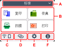 时,打印机已进入简易无线连接和智能手机连接的待机模式。 - E: 设置