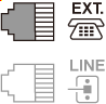 将电话连接到打印机时,请确保已关闭打印机,将组合电缆线的一端连接到打印机上“EXT.”标记附近的外部设备插口,然后将另一端连接到电话的电话线插口。