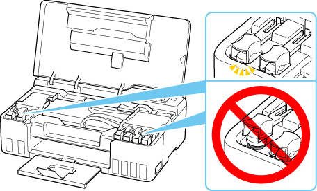 • Vérifiez que les capuchons de cartouche des cartouches d'encre sont fermés correctement. Si les capuchons de cartouche sont ouverts, fermez le capuchon de cartouche correctement.