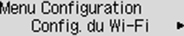 Lorsque le bouton Configuration (Setup) est utilisé, l'affichage bascule vers l'écran du menu de configuration.