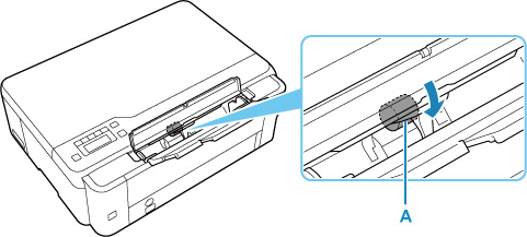 Tout en faisant faire plus de deux tours aux rouleaux d'entraînement du papier (A) situés à l'intérieur du réceptacle arrière, nettoyez-les avec un chiffon humidifié et fermement essoré.