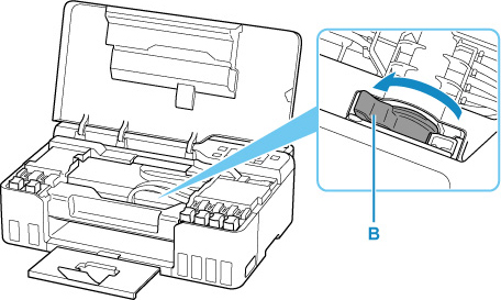 5. Tournez le levier de valve d'encre (B) vers la gauche.