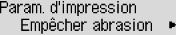 Cette section présente la procédure à suivre pour modifier les paramètres de l'écran Param. périphérique. L'option Empêcher abrasion est utilisée à titre d'exemple.