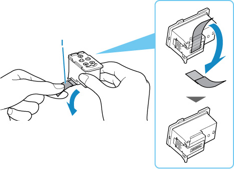 Sortez une nouvelle tête d'impression de son emballage et enlevez l'étiquette (H) avec précaution.