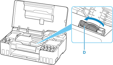 Tournez le levier de valve d'encre (D) vers la gauche.