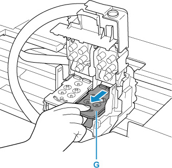 Tirez sur la tête d'impression (G) et basculez-la légèrement vers vous.