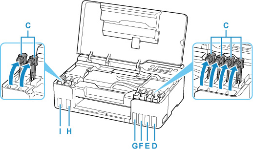 เปิดแค็ปตลับ (C) ของตลับหมึกที่ต้องการเติม