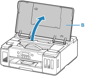 Při doplňování nádržek s barevným inkoustem otevřete pravý kryt nádržky s inkoustem (D).