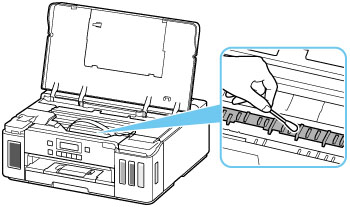 Wenn das Problem nach dem erneuten Reinigen weiterhin besteht, sind möglicherweise hervorstehende Teile im Druckerinneren verschmutzt. Wischen Sie die Verschmutzungen mit einem Wattestäbchen o. ä. ab.