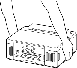 • Käsittele varovasti ja varmista, että laatikko jää vaaka-asentoon EIKÄ sitä käännetä ylösalaisin tai kyljelleen, koska tulostin voi rikkoutua tai tulostimen muste voi vuotaa.
