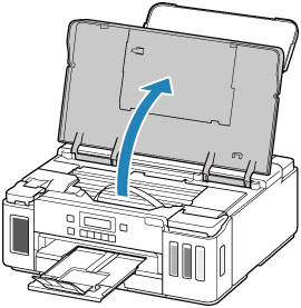 Repliez le support papier, puis fermez le couvercle du réceptacle arrière.