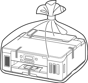 Gabenkite spausdintuvą plastikiniame maišelyje, kad iš spausdintuvo neišsilietų rašalas.