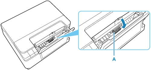 Obracając rolki podawania papieru (A) wewnątrz tylnej tacy więcej niż dwa razy, przetrzyj je dobrze wyciśniętą z wody ściereczką.