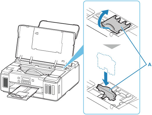 • Asiguraţi-vă că sunt închise bine capacele rezervoarelor de la rezervoarele de cerneală. În cazul în care capacele rezervoarelor de cerneală sunt deschise, închideţi capacele rezervoarelor în mod corespunzător.