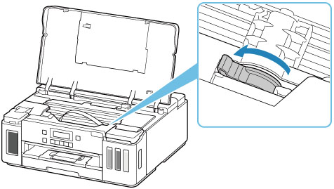 Stisnite jezičce i otvorite poklopac za zaključavanje ispisne glave.