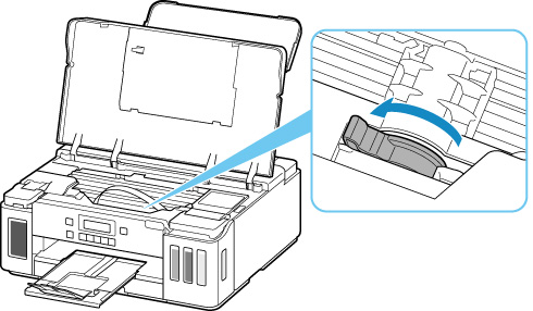 Înclinaţi pârghia supapei de cerneală complet spre stânga.