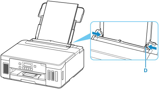 Kağıt kılavuzlarını açmak için sağ kağıt kılavuzunu (D) kaydırın.
