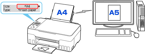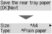 - Hvis f.eks. indstillingen for papirstørrelse til udskrivning/kopiering er A5, og de papiroplysninger, der er registreret på printeren, er A4, skal du lægge papir i A5-størrelse i den bagerste bakke, inden du starter udskrivning/kopiering.