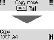 vises på LCD-skærmen, når der er trykket på knappen KOPI (COPY), knappen SCAN eller knappen Opsætning (Setup), betyder det, at Wi-Fi er aktiveret, og at printeren har forbindelse til den trådløse router.