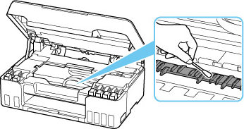 Kui probleem ei lahene ka pärast uut puhastamist, võivad printeri sisemuses olevad eenduvad osad olla määrdunud. Pühkige tint sakkidelt puuvillase nuustiku või muu sarnase vahendiga.