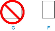 قم دائمًا بتحميل الورق بالاتجاه الطولي (F). يمكن أن يؤدي تحميل الورق بالاتجاه العرضي (G) إلى انحشار الورق.