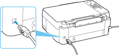 Ühendage printer ja arvuti USB-kaabli abil alltoodud joonisel näidatud viisil. USB-port asub printeri tagaküljel.